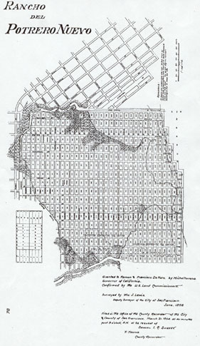 Living conditions at the Mission were deteriorating on their own when the Mexican revolution of 1810 ended the stipends to the Spanish Fathers and a generous system of land grants was established to assist new Mexican settlers. A few families laid claim to most of the land around the Mission: the Bernals claimed Potrero Viejo (from Islais Creek to Hunters Point) and the De Haros claimed the Potrero Nuevo (from Mission Creek to Islais Creek). The map that accompanied the De Haro land grant shows intimate details of the river and shoreline. (see Exhibit 1 below) The De Haro rancho was located near 15th and Potrero, two blocks uphill from the river. Today a collection of fine brick buildings marks the location.