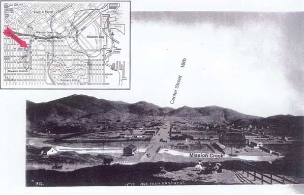The primary commercial activity developed along the city waterfront and harbors. Mission Creek was designated a navigable stream and a drawbridge constructed where Potrero crossed over to Brannan which allowed boats to reach as far inland as Center (16th) Street, where another major crossing was constructed (see Exhibit 2 below).
