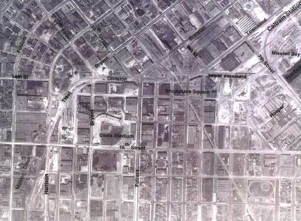 Exhibit 7: 1934 air photo of Mission Creek corridor, prior to Central Freeway