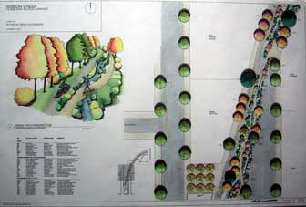 In this era of increasing concern and awareness of the need to protect our environment, highlighting the river corridor becomes a powerful mechanism to remind people of the water flowing to the Bay beneath our feet, and the need to reduce the toxic pollutants we dump onto our streets through everyday use of the automobile. Educational kiosks are planned along the route, which provide historical references and environmental education messages.